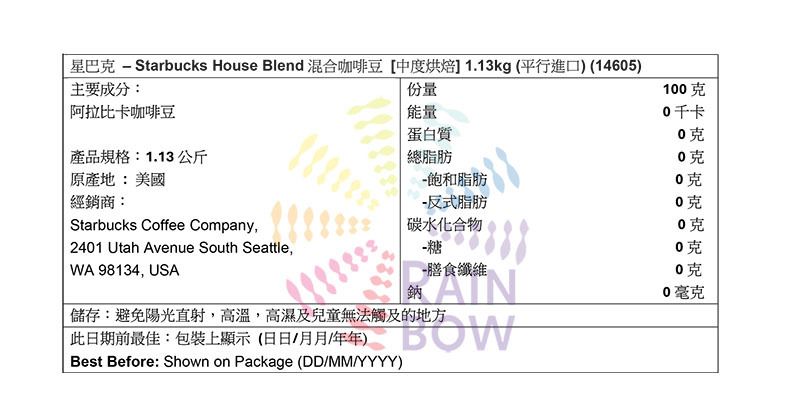 ![星巴克 – Starbucks House Blend混合咖啡豆 [中度烘焙] 1.13kg BBF:2026年1月20日 (平行進口) (762111614605)](http://rbb.com.hk/cdn/shop/files/STAR-F036-FL-E.jpg?v=1761288964&width=1214)