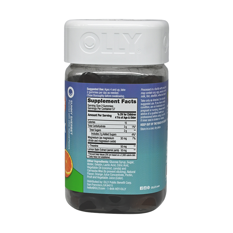 這些軟糖混合了鎂、L-茶氨酸和檸檬香蜂草萃取物。鎂是人體必需的礦物質,對兒童身體的許多關鍵功能負責。 L-茶氨酸是一種備受推崇的氨基酸。傳統的植物檸檬香蜂草萃取物已使用數百年。