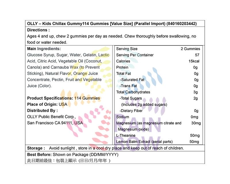 OLLY - 兒童 Chillax 舒緩軟糖 114 粒軟糖 [超值裝] EXP:2026年6月10日 (平行進口) (03442)