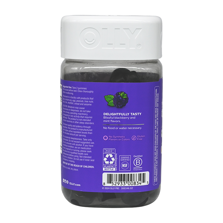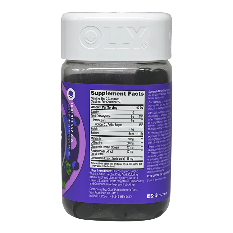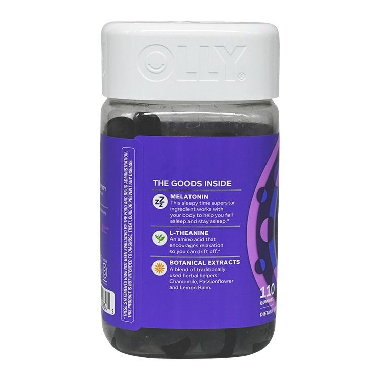 OLLY 睡眠補充品是美味的睡前夥伴,幫助放鬆思緒,鎮靜感官,輕鬆入睡。這些助眠軟糖每 2 粒軟糖精心調配了 3mg褪黑激素和 L-茶氨酸,以支持健康的睡眠週期。 L-茶氨酸有助於平靜心情,讓您輕鬆入睡。褪黑激素是助眠明星成分,有助於入睡並保持睡眠。這些軟糖也混合了傳統草藥成分:洋甘菊、西番蓮和檸檬香蜂草萃取物。